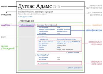 | Keywords: Datamodel in Wikidata ru.svg en Graphic representing the datamodel in Wikidata with a statement group and opened references ru Схематичное п едставление используемой в Викиданных модели данных с показом г уппы утве ждений и азве нутых ссылок на источники 2016-06-21 localization based on File Datamodel in Wikidata svg Charlie Kritschmar WMDE Kaganer other versions Datamodel in Wikidata cc-zero Graphics Wikidata information materials Wikidata Wikidata visualizations | ||||