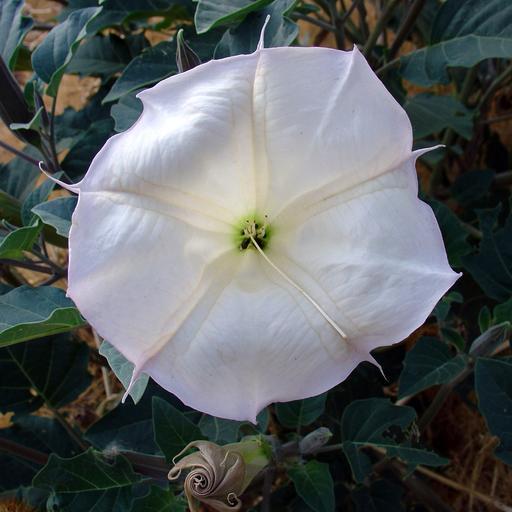 Keywords: Datura wrightii flower2.jpg Sacred Datura shot near Moab Utah Own 2006-07 Dlarsen Close-ups of Datura wrightii flowers