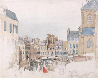 Keywords: David Cox - A French Market Place - Google Art Project.jpg Inscribed in artist's hand in graphite on roof upper right slate ; on building upper left not quite high as Inscription _Signed_and_Dated not signed Not on View Watercolor over graphite on medium smooth white wove paper French market building church barrow cityscape special url_id 3gEvHAF9GECXfQ PD-old-100-1923 1859 Google Art Project works by David Cox Artworks of David Cox Paintings in the Yale Center for British Art