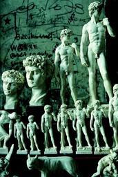 Keywords: david michelangelo monumental statue small replicas high renaissance most famous sculpture the history of art original in the galleria dell' accademia in florence italy tourism kiosk scan