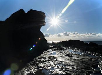 Keywords: dawn beach guilche nerja malaga costa del sol spain sea sky landscape sun clouds blue rocks stillness peaceful horizon holiday