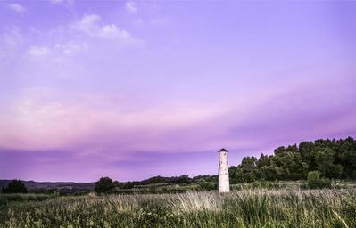 Keywords: dawn country the sky the clouds horizon purple blue water tower sunrise september purple sky meadow grass