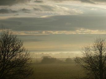 Keywords: dawn fog the rising sun nature tree cloudy heaven cloud field morning east