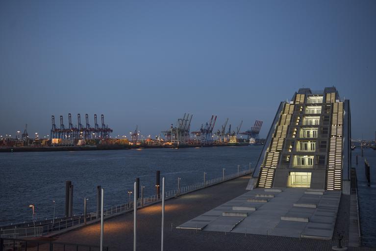 Keywords: dawn port hamburg dockland mood morning light harbour cranes