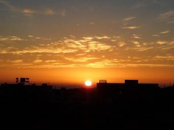 Keywords: dawn sun buildings city orange horizon sky light stillness