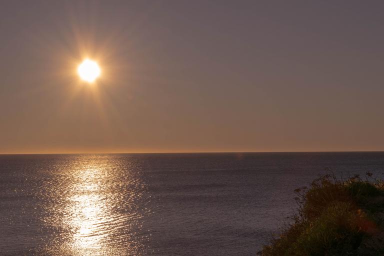 Keywords: dawn sun sea rock yellow ray of sunshine sky