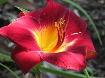 Keywords: daylily flower red stamen pansy outdoors hibiscus delicate pistil bloom