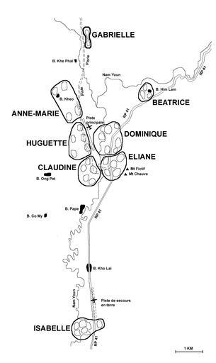 Keywords: DBP 13 mars 1954.png en Map of Dien Bien Phu on 13 march 1954 fr Carte du camp retranché de Dien Bien Phu le 13 mars 1954 own Billbolus 2010-05-25 First Indochina War Battle of Dien Bien Phu cc-zero