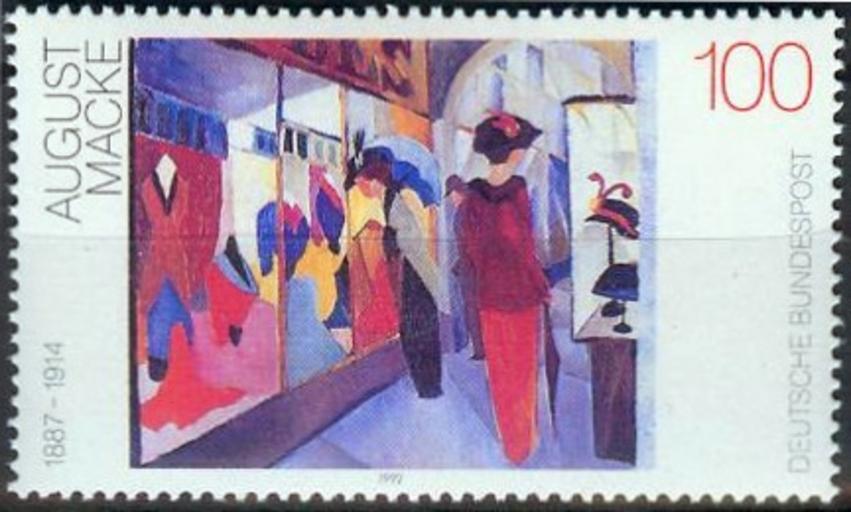 | Keywords: DBP 1992 1618-R.JPG Motiv / Motive Deutsche Malerei des 20 Jahrhunderts August Macke Modegeschäft Ausgabepreis / Price 100 Pfennig Erstausgabetag / First Day of Issue 1992-06-11 Michel-Katalog-Nr 1618 Herausgeber / Publisher Deutsche Bundespost Designer Ernst Jünger und Lorli Jünger Quelle / Source Deutsche Bundespost / Meine eigene Sammlung / My own collection Scan 2010-03-03 User R Engelhardt/Template Medion-Scans Uploaded by User R Engelhardt/Template filenumber User R Engelhardt/Template permission Siehe auch - See also <gallery> File DBP_1992_1617-R JPG </gallery> oil on canvas 1914 Rest PD-ineligible See also <gallery> File Macke Modegeschäft jpg </gallery> Taken with Medion image scanners Stamp scans by R Engelhardt 1992 stamps of Germany 1618 Ernst Jünger und Lorli Jünger Paintings on stamps of Germany 1913 paintings by August Macke German stamps review keep |