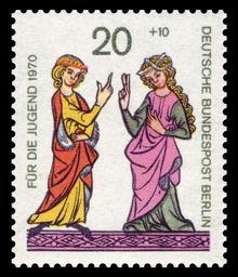 | Keywords: DBPB 1970 355 Minnesänger.jpg Berlin series for social welfare for the youth 1970 Minnesingers Jugendmarken Berlin 1970 Minnesänger Graphics by Froitzheim Ausgabepreis 20+10 Pfennig First Day of Issue / Erstausgabetag 5 Februar 1968 Michel-Katalog-Nr 355 Berlin scanned by NobbiP 2009-01 scanned by NobbiP PD-old-100 <gallery> File DBPB 1970 354 Minnesänger jpg File DBPB 1970 356 Minnesänger jpg File DBPB 1970 357 Minnesänger jpg </gallery> Philately Meinloh von Sevelingen Miniatur aus der Weingartner Liederhandschrift Nennwert 20+10 Pfennig 1970-02-05 Froitzheim 3 126 000 Rastertiefdruck 355 Berlin Jugendmarken Minnesang Weingartner Liederhandschrift Couples on stamps 1970 Deutsche Bundespost Berlin stamps 355 Minnesingers |
