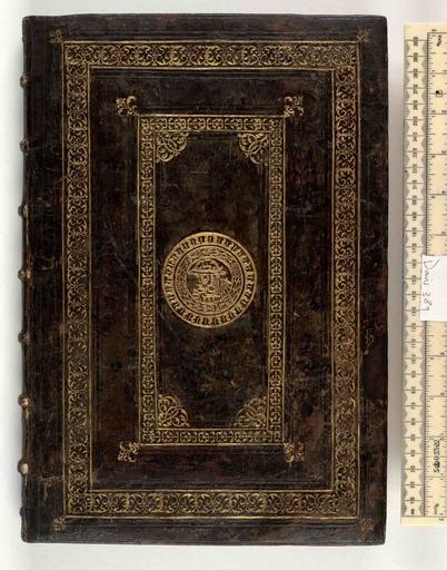 | Keywords: De asse et partibus eius. - Upper cover (Davis389).jpg Style Circle Cornerpiece Medallion or plaquette Panel design; Caption Upper cover; Colour Brown; Edge Gilt gauffered exhibition history Decorative Technique Tooled in gold Tooled in blind; Cover Material Calf Bound in Paris by the Fleur-de-lis Binder c 1536 once known as the Bayfus binder Traces of 4 pairs of ties Edges gilt and gauffered with curls and leafy ornaments M Culot believes the Fleur de lis binder to have been Etienne Roffet object history Text 1532; Paris; Unspecified object type Cc-zero place of creation Binding France place of discovery See M M Foot The Henry Davis Gift Vol III London 2010 Macchi states; 2 nd quarter century Paris bound by J Grolier's craftsman Bayfius Binder with Mars radiating medallion Interlaced external border circles and panel internal corners tools show the Italianate taste Bibliothèque nationale de France Paris 80 reliures françaises p 2 n 24 J de Sauzay coat-of-arms; J Guignard Premières reliures parisiennes à décor doré p 229-249; F Macchi - L Macchi Il Dizionario illustrato della legatura p 136; J Toulet Les reliures p 533 - see C 108 tt 2 C 130 e 4 Davis 334 Davis 335 Davis 369 Typically French Renaissance several bands thereof two smooth at head and bottom Reproduced in Sotheby Co London Catalogue Sotheby's of valuable printed books and fine bindings from the celebrated collection the property of Major J R Abbey London Sotheby and Co 19-21 June 1967 p 47 lot 1721 pl 103 Shelfmark Davis 366 is bound by the Bayfius binder too See A Hobson French and Italian collectors n 2 Bayfius De re vestiaria Lyon 1536 British Library image http //www bl uk/catalogues/bookbindings/LargeImage aspx RecordId 020-000003988 ImageId ImageId 41599 Copyright BL De asse et partibus eius Uploaded with GWToolset De asse et partibus eius - Upper cover Davis389 http //www webarchive org uk/bldatasets/bindings/6114_4 jpg Bookbinding 16th-century bookbinding British Library Bookbindings |