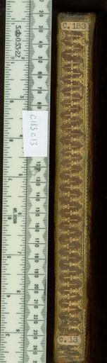 Keywords: De capite sacri ordinis Sancti Spiritus dissertatio. In qua ortus, progressusque ordinis totius, ac speciatim Romanæ domus amplitudo, prærogatiuum jus, & oeconomia disseruntur. (Lugduni, 164 - Spine (C183c13).jpg Style All over design Fan Armorial Compartments; Caption Spine; Colour Brown; Edge Gilt exhibition history Decorative Technique Tooled in gold; Cover Material Goatskin includes morocco turkey etc Probably a Roman binding may be by the Rospigliosi workshop to be checked Smooth spine object history Text 1649; Lyons; Christina Queen of Sweden 1626-1689 object type Cc-zero place of creation Binding Italy place of discovery A R A Hobson French and Italian Collectors Oxford 1953 n74 For Rospigliosi bindery see See M M Foot The Henry Davis Gift vol I London 1978 Appendix p 333-336 p 335 n 57 A Hobson French and Italian Collectors pp xli-xlii 152-155; Sten G Lindberg Queen Christina Bindings Analecta Reginensia I Queen Christina of Sweden Documents and Studies ed M von Platen Stockholm 1966 pp 199-225; Piccarda Quilici La Legatoria Romana dal Rinascimento al Barocco and Jose Ruysschaert Le Legature Romane della Regina Cristina in Legatura Romana Barocca 1565-1700 Rome 1991 Folger 12 11 Folger Shakespeare Library Fine and historic bookbindings from the Folger Shakespeare Library New York 1992 British Library image http //www bl uk/catalogues/bookbindings/LargeImage aspx RecordId 020-000014891 ImageId ImageId 54285 Copyright BL De capite sacri ordinis Sancti Spiritus dissertatio In qua ortus progressusque ordinis totius ac speciatim Romanæ domus amplitudo prærogatiuum jus oeconomia disseruntur Lugduni 1649 Uploaded with GWToolset De capite sacri ordinis Sancti Spiritus dissertatio In qua ortus progressusque ordinis totius ac speciatim Romanæ domus amplitudo prærogatiuum jus oeconomia disseruntur Lugduni 164 - Spine C183c13 http //www webarchive org uk/bldatasets/bindings/c183c13spine jpg Bookbinding 17th-century bookbinding British Library Bookbindings
