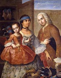 | Keywords: De español y mestiza, castiza.jpg en Painting De español y mestiza castiza by Miguel Cabrera Mexico 1763 Museum of the Americas Madrid es Pintura De español y mestiza castiza por Miguel Cabrera México 1763 Museo de América Madrid 2015-10-05 own Creator Miguel Cabrera other versions PD-old-100 Spanish Colonial art in the Museo de América Madrid Uploaded with UploadWizard 18th-century oil on canvas paintings in Spain Miguel Cabrera 1763 portrait paintings 18th-century paintings from Mexico Casta paintings |