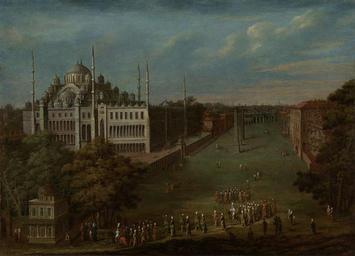 | Keywords: De grootvizier steekt de Atmeydanı (hippodroom) over Rijksmuseum SK-A-1998.jpeg accession number SK-A-1998 Jean Baptiste Vanmour credit line nl Vanuit vogelvlucht toont Vanmour de beschouwer het Atmeydanı Hippodroom met de obelisken en de slangenzuil Links van het plein zien we de Sultan Ahmed Moskee Blauwe Moskee de enige moskee in de stad met zes minaretten Ook het paleis van de grootvizier aan de andere kant van het plein is duidelijk herkenbaar Centraal op het schilderij heeft Vanmour een lange stoet van mensen weergegeven Het is de grootvizier met zijn gevolg die het Atmeydanı oversteken van zijn paleis aan de rechter zijde naar de Sultan Ahmed Moskee aan de andere kant van het plein Ze zijn onderweg naar de moskee voor het vrijdaggebed De stoet wordt aangevoerd door de lieutenant van de grootvizier de vizir kâhyasi op zijn prachtig uitgedoste paard Dan volgen de voetsoldaten van de lieutenant die op het schilderij direct achter hem lopen maar ook vaak naast zijn paard lopen Hierachter komen de zes wachters van de grootvizier die op het schilderij twee koppen groter lijken te zijn dan de overige bedienden Ze dragen groene jassen met vergulde ceintuurs en rijk gedecoreerde halve pieken Achter hen lopen twee mannen die een tapijt en een kussen dragen Zij moeten steeds dicht in de buurt van de grootvizier blijven Mocht hij op weg naar de moskee worden opgehouden door onvoorziene omstandigheden en daardoor tijdens de oproep voor het gebed nog op straat zijn dan kan hij van dit kleed en kussen gebruik maken De grootvizier legt de korte afstand net als zijn lieutenant te paard af De langgerekte trap bij zijn paleis maakte het hem mogelijk om te paard zijn paleis te verlaten Hij wordt gevolgd en omringd door vele bedienden waarvan enkelen ook kussens of kleden onder de arm dragen Collection schilderijen; Vanmour serie ; Jean Baptiste Vanmour 1671-1737 olieverf op doek 1720-1737 drager Height cm 61 drager Width cm 84 5 drager + lijst Gewicht kg 5 8 exhibition history 2012-2012 Amsterdam Istanbul-II Amsterdam 2012-2012 Amsterdam Istanbul-II Amsterdam 2012-2012 MOP 11 OTTOMANIA De Turkse wereld door westerse ogen 1500-1750 Amsterdam 2012-2012 Amsterdam Istanbul - I Istanbul 2012-2012 Amsterdam Istanbul Istanbul 2010-2011 A journey into the world of the Ottomans Doha 2009-2010 De Bynzance à Istanbul Paris 2006-2007 Die Türken kommen Exotik und Erotik Mozart in Koblenz und die Orient-Sehnsucht in der Kunst Koblenz 2003-2004 An eyewitness of the Tulip Era Jean-Baptiste Vanmour Istanbul 2003-2003 De Ambassadeur de Sultan and de Kunstenaar op audiëntie in Istanbul Amsterdam 1978-1978 Het Turkse hofleven in de 18e eeuw schilderijen van Jean-Baptiste Vanmour 1671-1737 Amsterdam 1978-1978 Les peintres turques de Jean-Baptiste Vanmour 1978-06-29 1978-1978 Les peintres turques de Jean-Baptiste Vanmour 1978-05-15 1962-1962 Herdenkingstentoonstelling 350 Jaar Nederland-Turkije 1612-1962 Amsterdam Institution Rijksmuseum Technique oil canvas object history Acquisition 1902 object type Potential derivatives exist check http //commons wikimedia org/w/index php search Rijksmuseum+SK-A-1998 this search PD-US PD-old Data and photography rights All data and all images made available through the API are either in the public domain or are subject to a CC0 license https //www rijksmuseum nl/en/api/terms-and-conditions-of-use cc-zero place of creation http //www rijksmuseum nl/collectie/SK-A-1998 De grootvizier steekt de Atmeydanı hippodroom over Q17326692 Uploaded with GWToolset De grootvizier steekt de Atmeydanı hippodroom over Rijksmuseum SK-A-1998 http //www rijksmuseum nl/media/assets/SK-A-1998 Images uploaded by Fæ Images from the Rijksmuseum Turkish paintings in the Rijksmuseum Amsterdam Paintings by Jean Baptiste Vanmour |