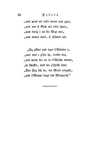 Keywords: DE Hebel Werke 1834 2 020.png 2 Allemannische und hochdeutsche Gedichte 1834 019 021