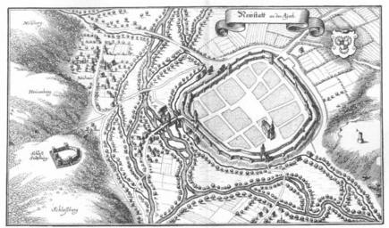 Keywords: De Merian Frankoniae 087.jpg 086 088 Engravings of Topographia Franconiae Neustadt an der Aisch Bridges in Landkreis Neustadt an der Aisch-Bad Windsheim Stone arch bridges in Bavaria