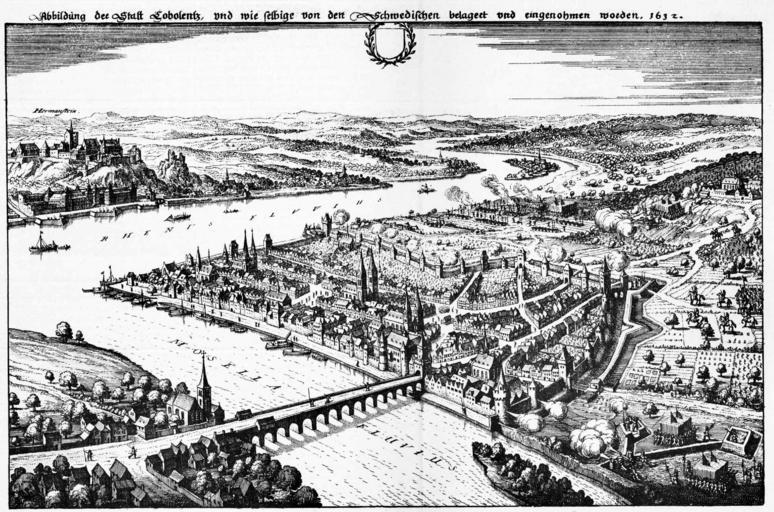 Keywords: De Merian Mainz Trier Köln 057.jpg Koblenz 056 058 Historic views of Koblenz Castles in Koblenz Koblenz in the 17th century Historical images of Deutsches Eck 1646
