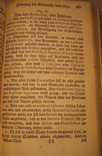 | Keywords: De Ordnung des Gymnasii 481.jpg De_Ordnung_des_Gymnasii_ jpg 480 482 This is a scan of the historical document with the title <br/> Ordnung des Gymnasii aus/ From Sammlung Hamburgischer Gesetze und Verfassungen Der Achte Theil Photo from original book 1770 Klefeker Johann Ed PD-old-100 De Ordnung des Gymnasii |