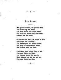| Keywords: De Storm Gedichte 1889 009.gif 008 010 Gedichte von Theodor Storm Achte Auflage Berlin Verlag von Gebrüder Paetel own scan from original book 1889 Theodor Storm 1817-1888 Author died more than 70 years ago - public domain PD-old De Wikisource book leaflet Die Stadt Theodor Storm |