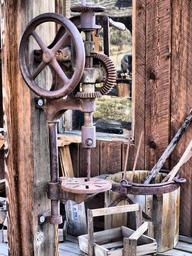 Keywords: deadman ranch ancient buildings wooden western style wild west ghost town heritage old building heritage site vintage antique british columbia canada tourist attraction countryside outdoor metal rusty rust metal rusty farm equipment hdr