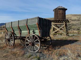 Keywords: deadman ranch ancient buildings wooden western style wild west ghost town heritage old building heritage site vintage antique british columbia canada scenery landscape tourist attraction countryside water tower wagon