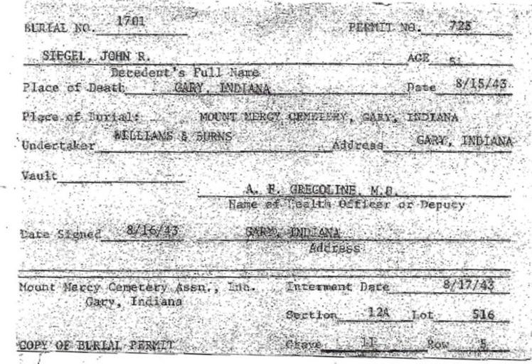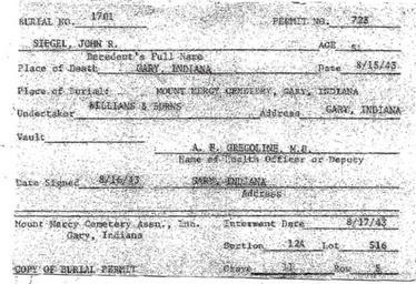 | Keywords: Death Certificate back COD trimed.jpg en Death certificate for John Otto Siegel reverse Note Spelling errors between the front and back side Valorc 2001-01-31 10 51 16 Department of Health Gary Indiana Department of Health Gary Indiana PD-USGov Uploaded with UploadWizard Medal of Honor families John Siegel Medal of Honor documentation |