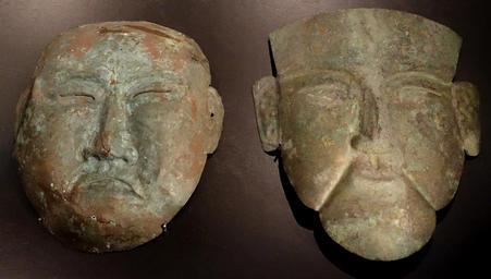 | Keywords: Death masks, Khitan people, northern China and Inner Mongolia, Liao dynasty, c. 1000 AD, left copper, right silver - Östasiatiska museet, Stockholm - DSC09629.JPG en Exhibit in the Östasiatiska museet Stockholm Sweden This artwork is old enough so that it is in the public domain Photography was permitted in the museum without restriction 2014-09-13 07 16 57 own Daderot other versions cc-zero Uploaded with UploadWizard Collections of Östasiatiska museet Khitan culture | ||||