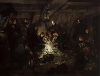 | Keywords: DeathofNelsonDevis.jpg The Death of Nelson 21 October 1805 http //www nmm ac uk/collections/nelson/viewObject cfm ID BHC2894 1805 Creator Arthur William Devis 1762 - 1822 Figures featured Revd Scott Nelson's chaplain rubbing his chest to help relieve the pain Victory's purser Walter Burke supporting the pillow Nelson ™s steward Chevalier looking towards Beatty ship's surgeon Beatty who feels Nelson ™s pulse and is about to pronounce him dead Captain Hardy standing behind him - not actually present at the moment of death Midshipman Collingwood and Lieutenant Yule rear left and left with a pile of captured enemy flags being brought in by a seaman Guitano Nelson ™s valet standing in right profile in front of Collingwood holding a glass from which Nelson took his last sips of water ˜Victory's' carpenter Mr Bunce stands on the far right above Bligh Lieutenant George Miller Bligh the dazed and wounded figure far right below Bunce Assistant Surgeon Neil Smith seated far right PD-old-100 Death of Horatio Nelson HMS Victory ship 1765 in art Arthur William Devis George Miller Bligh |