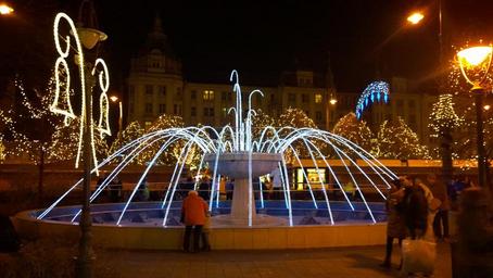 Keywords: debrecen hungary fountain at night