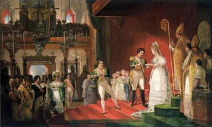 | Keywords: Debret32.jpg Artwork Creator Jean-Baptiste Debret c 1829 oil on canvas cm 22 1 15 8 object history credit line accession number Lago Pedro Corrêa do Debret e o Brasil obra completa 1816-1831 2nd ed Rio de Janeiro Capivara 2008 ISBN 978-85-89063-23-4 PD-old-100-1923 1848 Paintings of Pedro I of Brazil by Jean-Baptiste Debret Amélie de Beauharnais von Leuchtenberg 1829 paintings 19th-century paintings location missing Watercolor paintings in Brazil Pedro II of Brazil in art 1829 1829 in Brazil 1820s paintings from Brazil Pedro II of Brazil in the 1820s 1829 Royal wedding celebrations 1829 weddings ImageNote 1 1182 428 57 66 1818 1094 2 Dom Pedro I Emperor of Brazil ImageNoteEnd 1 ImageNote 2 1068 621 39 41 1818 1094 2 Dom Pedro Prince Imperial later Dom Pedro II Emperor of Brazil ImageNoteEnd 2 ImageNote 3 1039 603 34 41 1818 1094 2 Dona Januária Princess of Brazil ImageNoteEnd 3 ImageNote 4 991 621 41 41 1818 1094 2 Dona Paula Princess of Brazil ImageNoteEnd 4 ImageNote 5 957 630 36 39 1818 1094 2 Dona Francisca Princess of Brazil ImageNoteEnd 5 ImageNote 6 1295 407 64 71 1818 1094 2 Dona Amélia Empress of Brazil born Amélie of Leuchtenberg ImageNoteEnd 6 |