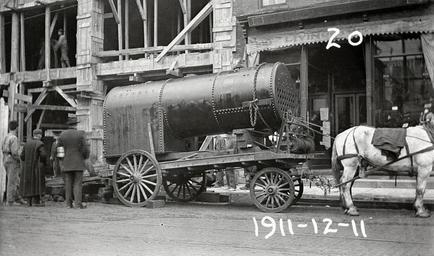 | Keywords: kalamazoo hanselman building hanselmanbuilding boiler horse workers construction skyscraper vehicle monochrome blackandwhite outdoor black and white A large boiler, possibly for the building's heating plant, is delivered. A large boiler, possibly for the building's heating plant, is delivered. |