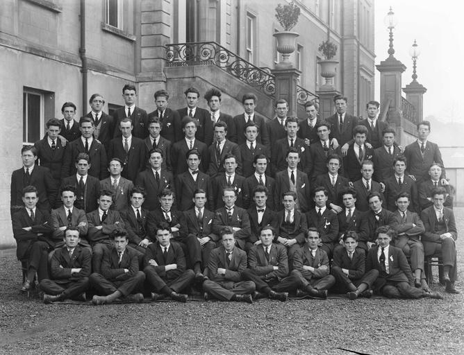 Keywords: mallow students de la salle college delasallecollege de la salle delasalle park road parkroad ireland munster men fáinne pioneer pins pioneerpins total abstinence totalabstinence suits ties december 1923 1920s twenties poole collection poolecollection glass negative glassnegative a.h. poole ahpoole arthur henri poole arthurhenripoole waterford national library of ireland nationallibraryofireland blackandwhite monochrome team sport outdoor sport black and white A group of students from Mallow pictured at De La Salle College, Waterford. Many of the young Corkmen are wearing the Fáinne rings and/or Pioneer badges on their lapels, showing that they speak Irish (enthusiastically) and abstain from alcohol. Date: 2 December 1923 NLI Ref.: P_WP_3140 A group of students from Mallow pictured at De La Salle College, Waterford. Many of the young Corkmen are wearing the Fáinne rings and/or Pioneer badges on their lapels, showing that they speak Irish (enthusiastically) and abstain from alcohol. Date: 2 December 1923 NLI Ref.: P_WP_3140