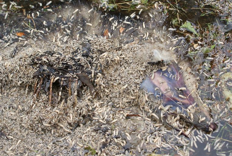Keywords: Decomposing possum.jpg en Decomposing Virginia Opossum Didelphis virginiana showing maggots Own TimVickers 2009-05-24 QualityImage Dead marsupials Didelphis virginiana Maggots