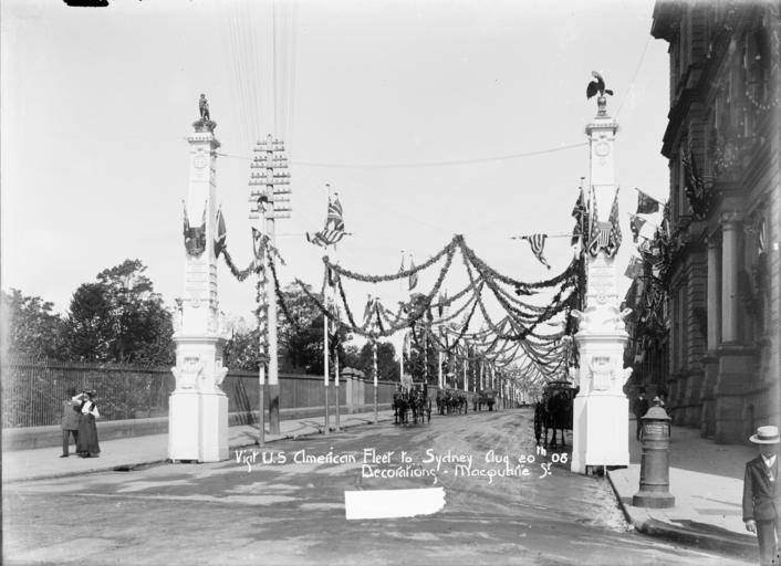| Keywords: archives state records nsw staterecordsnsw newsouthwales blackandwhite srnsw:series=18526 monochrome outdoor road black and white Title: Decorations in Macquarie Street celebrating the visit of the US Navy's 'Great White Fleet' Dated: 20/08/1908 Digital ID: 18526_a024_000018 Rights: www.records.nsw.gov.au/about-us/rights-and-permissions We'd love to hear from you if you use our photos/documents. Many other photos in our collection are available to view and browse on our website using Photo Investigator. Title: Decorations in Macquarie Street celebrating the visit of the US Navy's 'Great White Fleet' Dated: 20/08/1908 Digital ID: 18526_a024_000018 Rights: www.records.nsw.gov.au/about-us/rights-and-permissions We'd love to hear from you if you use our photos/documents. Many other photos in our collection are available to view and browse on our website using Photo Investigator. |