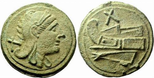 | Keywords: Decussis.jpg en Decussis or denarius ca 215 Æ 1075g Head of Roma r wearing Phrygian helmet; behind X Rev Prow l ; above X Haeberlin pl 46 1-3 Sydenham Aes Grave 67 Kent-Hirmer pl 7 15 Sydenham 98 Crawford 41/1 ru Декуссис ок 215 г до н э б онза 1075 г Голова Ромы вп аво в ф игийском шлеме http //www icollector com/images/1191/17214/17214_0150_1_lg jpg PD-Art Coins of the ancient Roman Republic | ||||