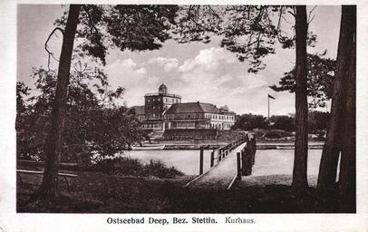 | Keywords: Deep Ostseebad Bez Stettin Kurhaus.jpg Dom zdrojowy w Mrzeżynie przed II wojną światową Deep Ostseebad Bez Stettin Kurhaus old postcard przed II wojną światową Verlag Fritz Wiese PD-old Black and white photographs of Poland Old postcards of Mrzeżyno |