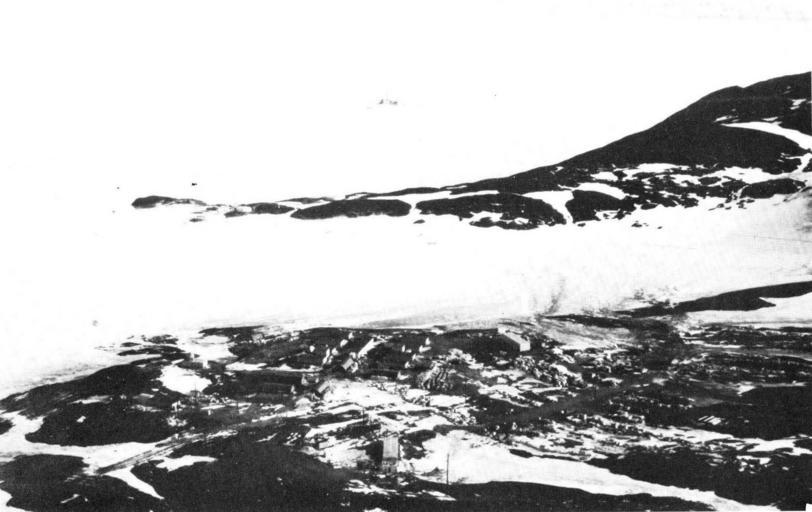 Keywords: Deepfreeze I 018a.jpg Airopfac McMurdo Sound March 3 1956 Antarctica - showing glacier breaking to winter quarters bay on which facility is located Report of Operation DEEPFREEZE I 1955-56 U S Navy Task Force 43 Washington D C 843 pp 1956 United States Navy Original work of the US Federal Government - public domain PD-USGov Operation Deep Freeze I |