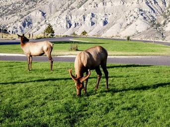 Keywords: deer animal mammal wild life grazing nature yellowstone wyoming yellowstone national park tourist attraction scenery