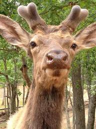 Keywords: deer animals mammals horns antlers wildlife portraits head face brown forest zoo parks greenery plants trees flora fauna