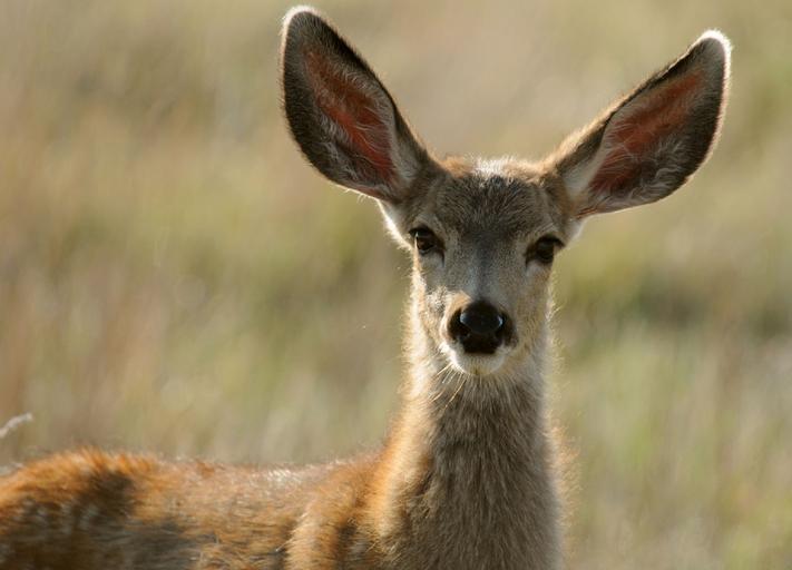 Keywords: deer doe wildlife nature female outdoors grass meadow looking portrait