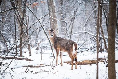 Keywords: deer snow wildlife animal mammal outdoors nature wild snowfall forest