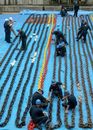 | Keywords: Defense.gov News Photo 060616-N-4953E-004.jpg en U S Navy sailors paint the anchor chains of the guided-missile destroyer USS Stethem DDG 63 at Commander Fleet Activities Yokosuka Japan on June 16 2006 Stethem is in dry dock for a three-month selective restricted availability 060616-N-4953E-004 Navy http //www defense gov/photos/newsphoto aspx newsphotoid 8129 2006-06-16 en Ensign Danny Ewing Jr U S Navy PD-USGov-Military-Navy Defense gov news media for June 2006 Import by User Slick-o-bot/Defense gov News Photos Defense gov photos requiring renaming Taken with Canon EOS 20D Images from United States Navy to check Photographs by Danny Ewing Jr |