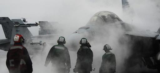 | Keywords: Defense.gov News Photo 090703-N-6538W-161.jpg en U S Navy flight deck personnel guide an F/A-18F Super Hornet aircraft from Strike Fighter Squadron 154 onto a catapult on the flight deck aboard the aircraft carrier USS John C Stennis CVN 74 during a Carrier Air Wing 9 fly off in the Pacific Ocean on July 3 2009 The Stennis is en route to San Diego to offload Carrier Air Wing 9 prior to heading back to its homeport of Bremerton Wash The Stennis is returning from a six-month deployment to the western Pacific 090703-N-6538W-161 http //www defense gov/photos/newsphoto aspx newsphotoid 11438 2009-07-03 en Petty Officer 3rd Class Walter M Wayman U S Navy PD-USGov-Military Import by User Slick-o-bot/Defense gov News Photos F/A-18F Super Hornet on flight decks Taken with Nikon D200 USS John C Stennis CVN-74 flight deck |