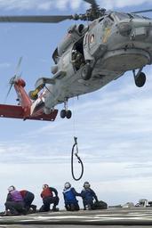 | Keywords: Defense.gov News Photo 090617-N-9123L-059.jpg en U S Navy sailors aboard the guided-missile destroyer USS McCampbell DDG 85 prepare to receive a fuel line from an SH-60B Seahawk helicopter assigned to Helicopter Anti-submarine Squadron Light 51 during a helicopter in-flight refueling exercise in the Pacific Ocean on June 17 2009 The McCampbell is one of seven Arleigh Burke-class guided-missile destroyers assigned to Destroyer Squadron 15 and is permanently forward deployed to Yokosuka Japan 090617-N-9123L-059 http //www defense gov/photos/newsphoto aspx newsphotoid 11391 2009-06-17 en Petty Officer 2nd Class Byron C Linder U S Navy PD-USGov-Military Import by User Slick-o-bot/Defense gov News Photos SH-60 Seahawk Taken with Nikon D200 Aboard USS McCampbell DDG-85 USS McCampbell DDG-85 |