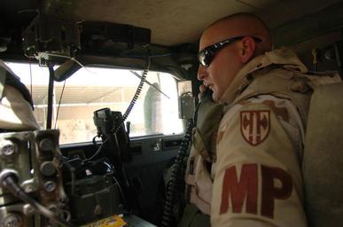 | Keywords: Defense.gov News Photo 050402-N-6501M-002.jpg en Army Military Policeman Staff Sgt Donald Wagers radios in his convoy's departure information before delivering ammunition to three local Iraqi Police stations in Najaf Iraq on April 2 2005 Wagers is attached to the 940th Military Police Unit and is part of the 155th Brigade Combat Team forward deployed to Camp Hotel in central Iraq 050402-N-6501M-002 Navy http //www defense gov/photos/newsphoto aspx newsphotoid 6373 2005-04-02 en Chief Petty Officer Edward Martens U S Navy PD-USGov-Military-Navy Defense gov news media for April 2005 Import by User Slick-o-bot/Defense gov News Photos Photos taken with Nikon D2H United States Army Military police of the United States Humvees in United States service |