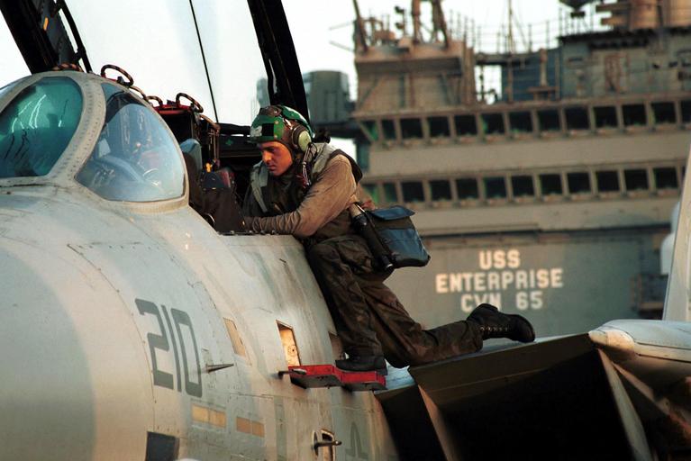 | Keywords: Defense.gov News Photo 011007-N-7216M-004.jpg  en A crewmember readies an F-14A Tomcat for upcoming flight operations in support of Operation Enduring Freedom on the flight deck of the USS Enterprise CVN 65 on Oct 7 2001 Aircraft are being readied for strike missions against al Qaeda terrorist training camps and military installations of the Taliban regime in Afghanistan The carefully targeted actions are designed to disrupt the use of Afghanistan as a base for terrorist operations and to attack the military capability of the Taliban regime 011007-N-7216M-004 Navy http //www defense gov/photos/newsphoto aspx newsphotoid 3660 2001-10-07 en Petty Officer 2nd Class Jason D Malcom U S Navy PD-USGov-Military-Navy Defense gov news media for October 2001 Import by User Slick-o-bot/Defense gov News Photos F-14A Tomcat on flight decks Aboard USS Enterprise CVN-65 USS Enterprise CVN-65 Operation Enduring Freedom |