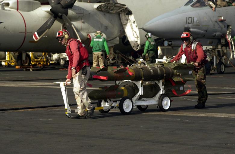 | Keywords: Defense.gov News Photo 011007-N-6520M-034.jpg  en Aviation ordnancemen move laser guided bombs to waiting aircraft on the USS Carl Vinson CVN 70 in preparation for strikes against al Qaeda terrorist training camps and military installations of the Taliban regime in Afghanistan on Oct 7 2001 The carefully targeted actions are designed to disrupt the use of Afghanistan as a base for terrorist operations and to attack the military capability of the Taliban regime The USS Carl Vinson CVN 70 is operating in the Arabian Sea as part of Operation Enduring Freedom 011007-N-6520M-034 Navy http //www defense gov/photos/newsphoto aspx newsphotoid 3658 2001-10-07 en Petty Officer 1st Class Greg Messier U S Navy PD-USGov-Military-Navy Defense gov news media for October 2001 Import by User Slick-o-bot/Defense gov News Photos United States Navy in the War in Afghanistan 2001-present War in Afghanistan 2001-present related operations outside of Afghanistan Aboard USS Carl Vinson CVN-70 Operation Enduring Freedom USS Carl Vinson CVN-70  |