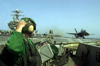 | Keywords: Defense.gov News Photo 011007-N-6520M-029.jpg en An F/A-18C Hornet is launched from the aircraft carrier USS Carl Vinson CVN 70 in a strike against al Qaeda terrorist training camps and military installations of the Taliban regime in Afghanistan on Oct 7 2001 The carefully targeted actions are designed to disrupt the use of Afghanistan as a base for terrorist operations and to attack the military capability of the Taliban regime The USS Carl Vinson CVN 70 is operating in the Arabian Sea as part of Operation Enduring Freedom 011007-N-6520M-029 Navy http //www defense gov/photos/newsphoto aspx newsphotoid 3657 2001-10-07 en Petty Officer 1st Class Greg Messier U S Navy PD-USGov-Military-Navy Defense gov news media for October 2001 Import by User Slick-o-bot/Defense gov News Photos Aboard USS Carl Vinson CVN-70 F/A-18C Hornet on flight decks F/A-18 Hornet aircraft carrier landings Aircraft in the War in Afghanistan 2001-present United States Navy in the War in Afghanistan 2001-present War in Afghanistan 2001-present related operations outside of Afghanistan Operation Enduring Freedom USS Carl Vinson CVN-70 |