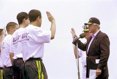 | Keywords: Defense.gov News Photo 000704-N-5636A-001.jpg en President Bill Clinton administers the oath of enlistment to new Navy recruits in a special ceremony on board the USS John F Kennedy CV 67 in New York harbor on July 4 2000 The president was on the aircraft carrier to receive honors from ships as they passed in review during the International Naval Review and Operation Sail 2000 000704-N-5636A-001 Navy http //www defense gov/photos/newsphoto aspx newsphotoid 2919 2000-07-04 en Chief Petty Officer Delores Anglin U S Navy PD-USGov-Military-Navy Defense gov news media for July 2000 Import by User Slick-o-bot/Defense gov News Photos Bill Clinton with microphones Aboard USS John F Kennedy CV-67 Bill Clinton with military people Bill Clinton in 2000 2000 in New York City United States Navy July 2000 in New York |