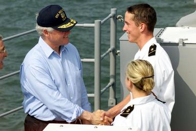 | Keywords: Defense.gov News Photo 000704-N-1012K-502.jpg en President Bill Clinton greets Midshipman 3rd Class Justin Ott and Midshipman 3rd Class Melissa Reinchenback aboard the USS Hue City CG 66 on July 4 2000 in New York Harbor The president is aboard the Ticonderoga class cruiser to review naval units from around the world for the International Naval Review 2000 Ott is from Delram N J and Reinchenback is from Galloway Township N J 000704-N-1012K-502 Navy http //www defense gov/photos/newsphoto aspx newsphotoid 2918 2000-07-04 en Petty Officer 2nd Class J B Keefer U S Navy PD-USGov-Military-Navy Import by User Slick-o-bot/Defense gov News Photos Bill Clinton in 2000 Defense gov photos requiring renaming Defense gov news media for July 2000 Bill Clinton shaking hands with military people July 2000 in New York USS Hué City CG-66 2000 in New York City |